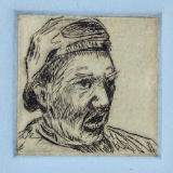 2 x 2" drypoint on acrylic matrix, Printed on Blue, Mangnai paper. Matted